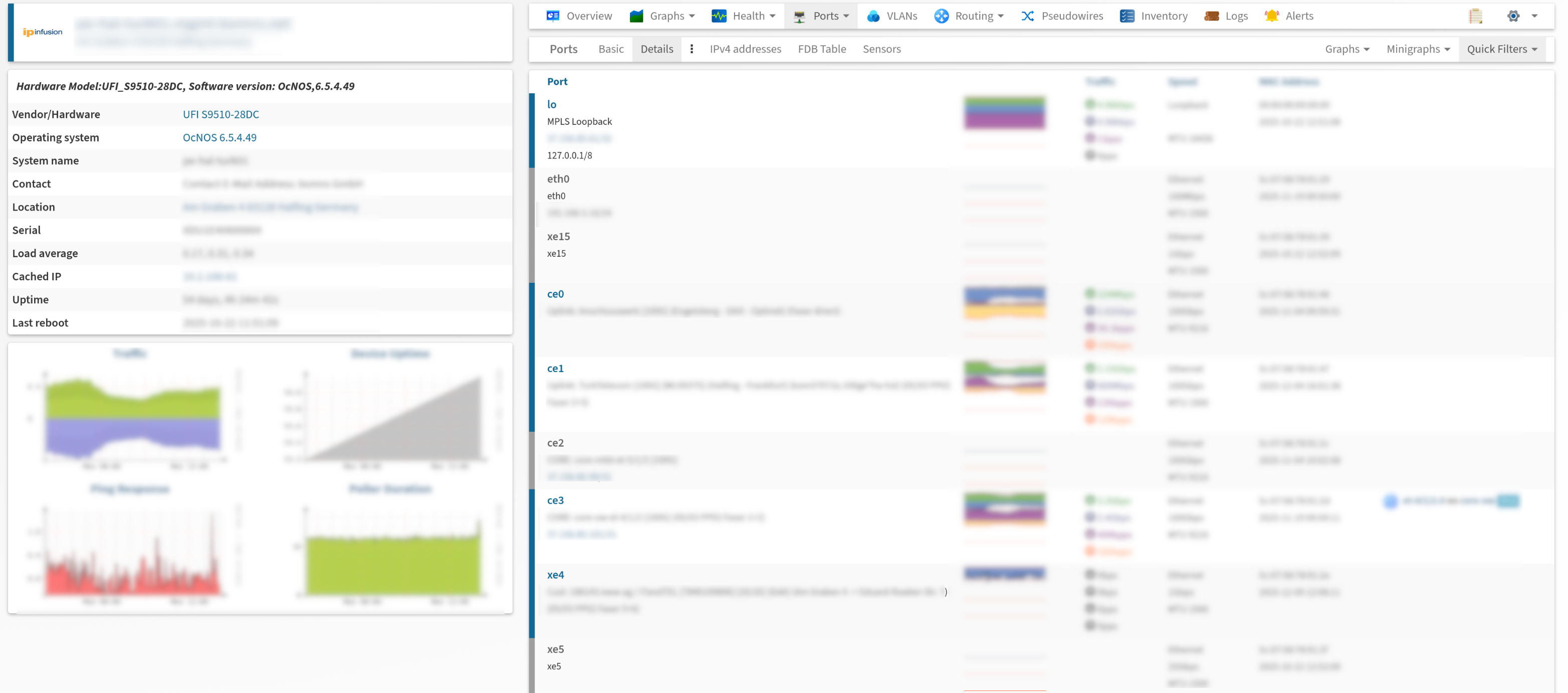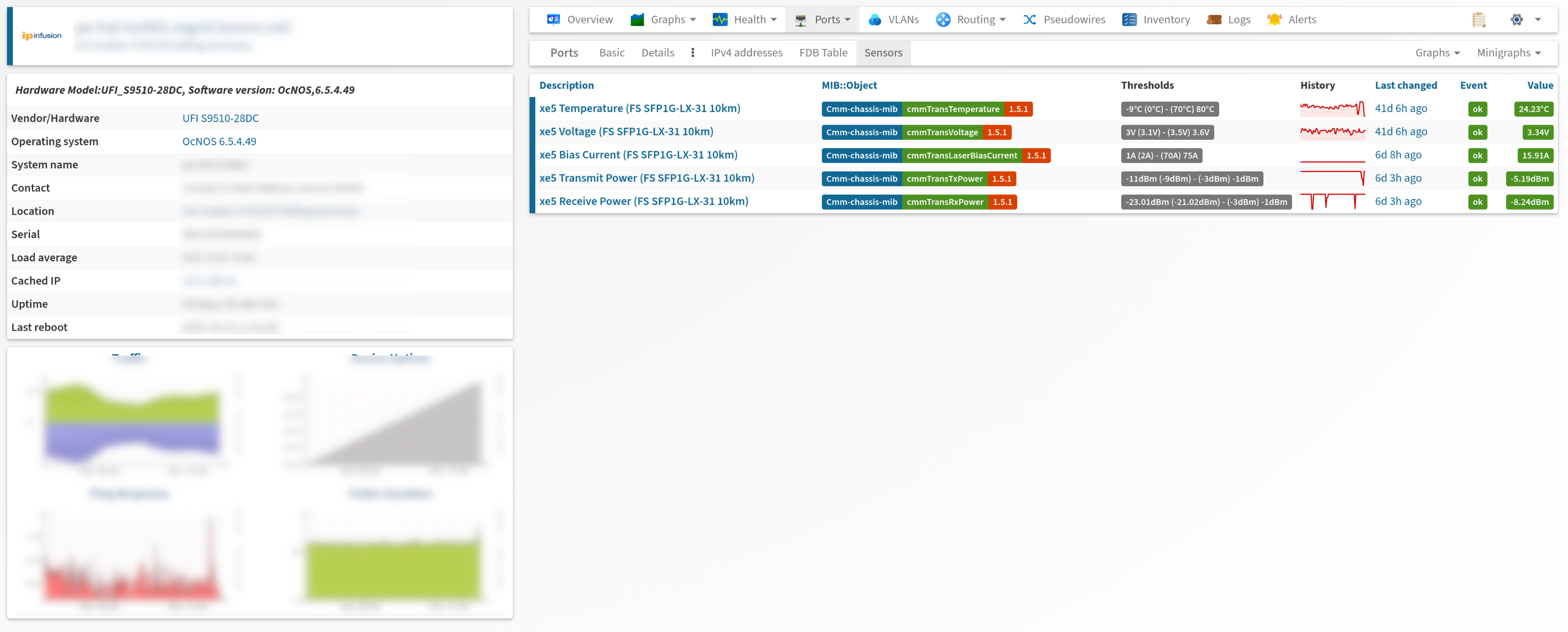 we noticed that when monitoring IPInfusion/OcNOS Routers (at least on Ufispace s9510-s28dc) the Interface Sensors naming is incorrect, some items are offset by 1, and others are not showing up.