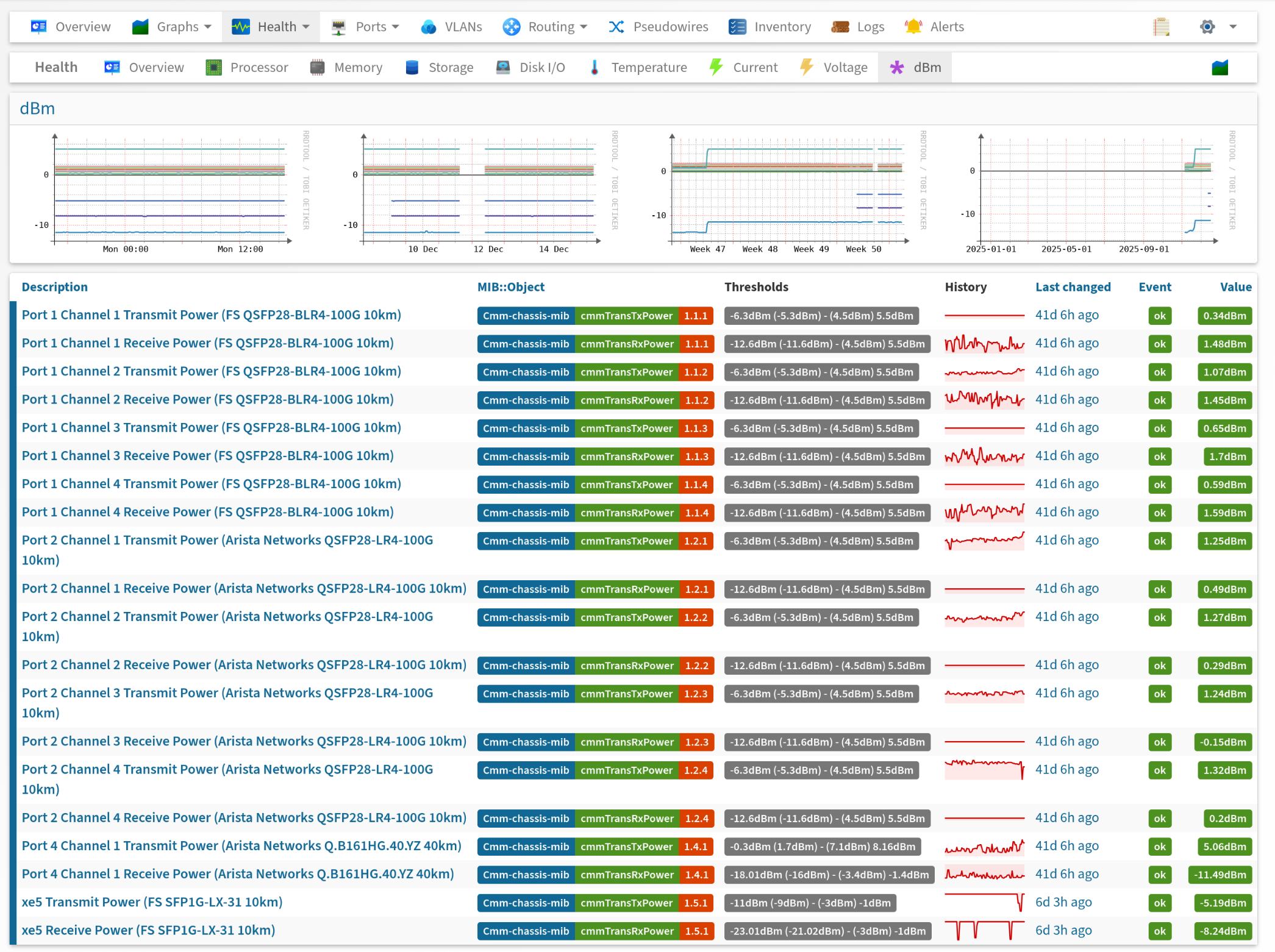 Other ports are not showing up in the Ports/Sensors section, but they do appear in Health/dBm (see dbm.png).