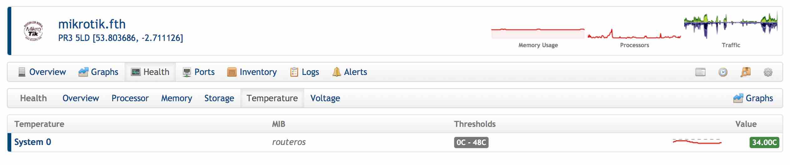 I go into one our mikrotik switches, click Health, then into Temperature
